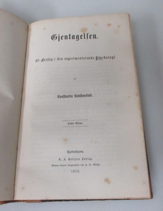 Buch mit verschiedenen Artikeln, Søren Kirkegaard "Drei Gespräche", veröffentlicht Kopenhagen im Jahre 1873, zweite Auflage. Mit ledereinband.