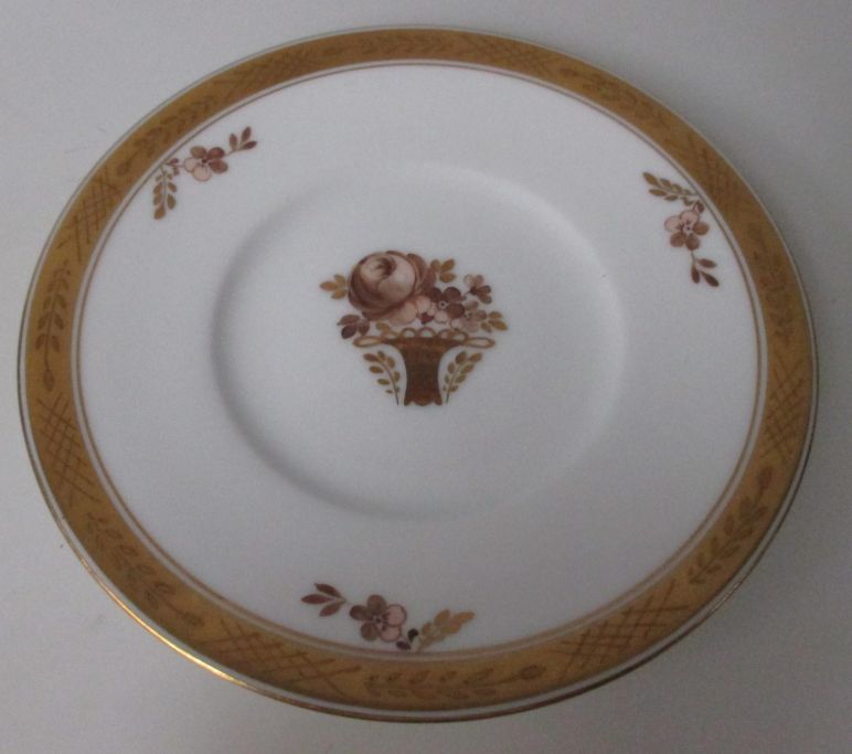 Royal Copenhagen, 10522, Seitenplatte, gold Korb, 20. Jahrhundert. Kopenhagen, Dänemark. Gestempelt. Dia:. 15,5 cm.