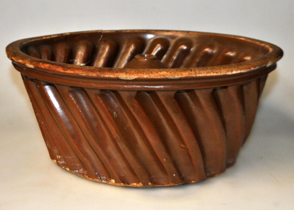 Backform, Pastetenform, aus braunglasierte Keramik, wahrscheinlich aus Deutschland oder Südjütland, 19. Jahrhundert H:.. 12,5 cm. Dia:. 28,5 cm.