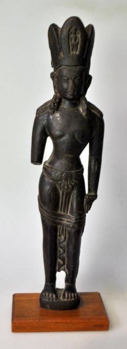 Antike indische Holzfigur eines stehenden Mannes, 18./19. auf dem neueren Sockel aus Mahagoni.