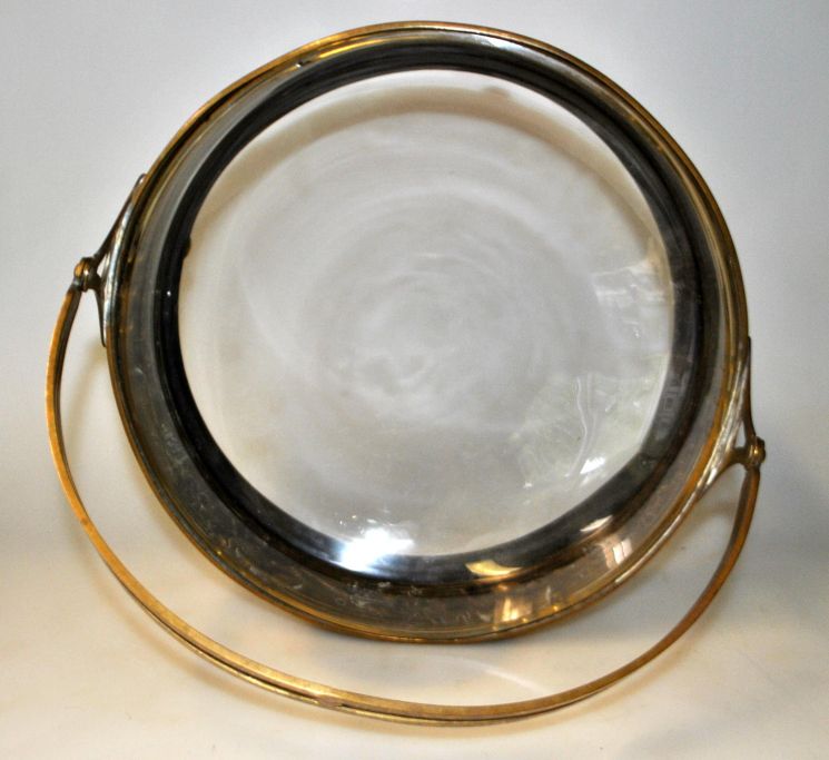 Obstschale aus Messing mit Glaseinsatz, WMF, ca. 1900, Deutschland.