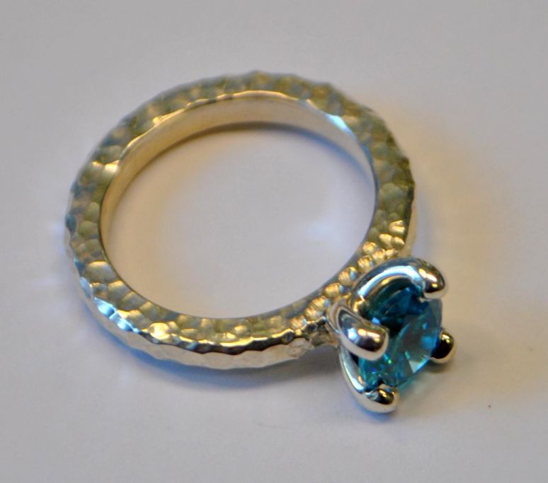 Ring aus Sterlingsilber mit blauem Zirkon im Brillantschliff, Ib Due aus dem 20. Jahrhundert, Aarhus, Dänemark