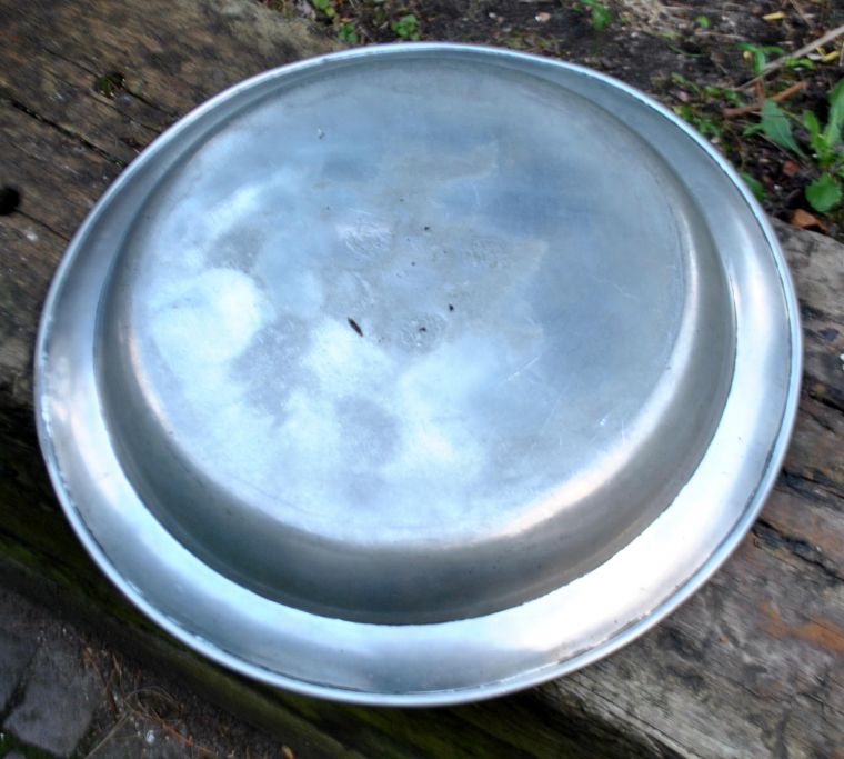 Große Zinnschale, 18./19. Jahrhundert. Deutschland. Gestempelt: Friis. Höhe: 5 cm. Durchmesser: 35 cm.