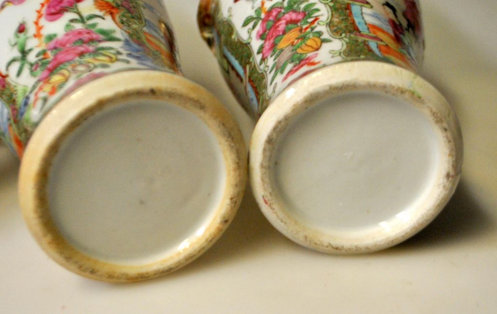 Paar chinesische Deckelvasen, Canton famille rose, ca. 1850.
