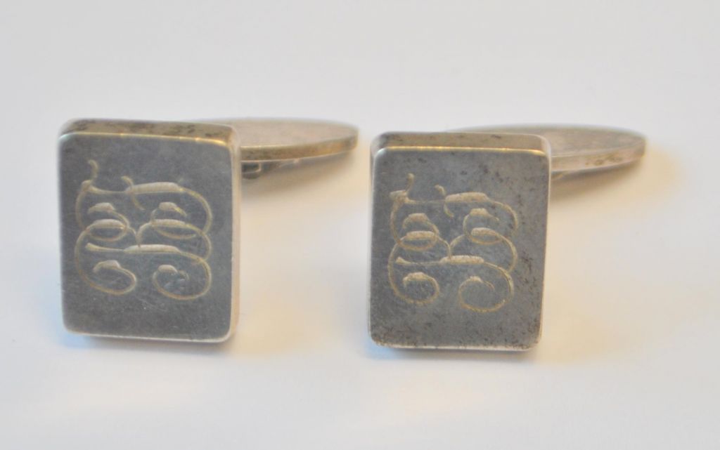 Paar Manschettenknöpfe von Georg Jensen aus Sterlingsilber, 20. Jahrhundert, Kopenhagen, Dänemark. Entwurf: 84. Gestempelt. Mit Gravur: BJ.