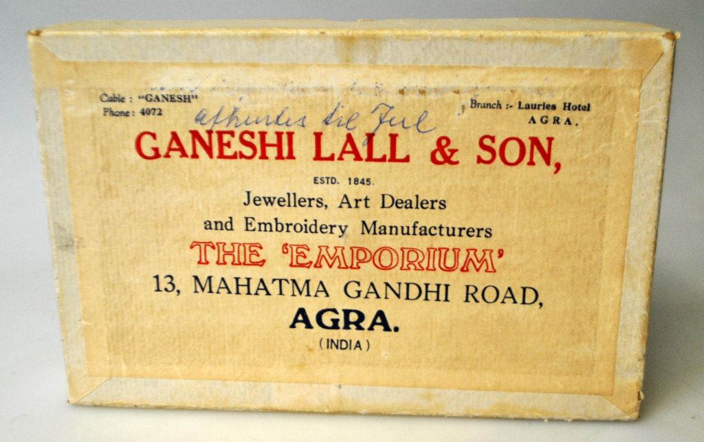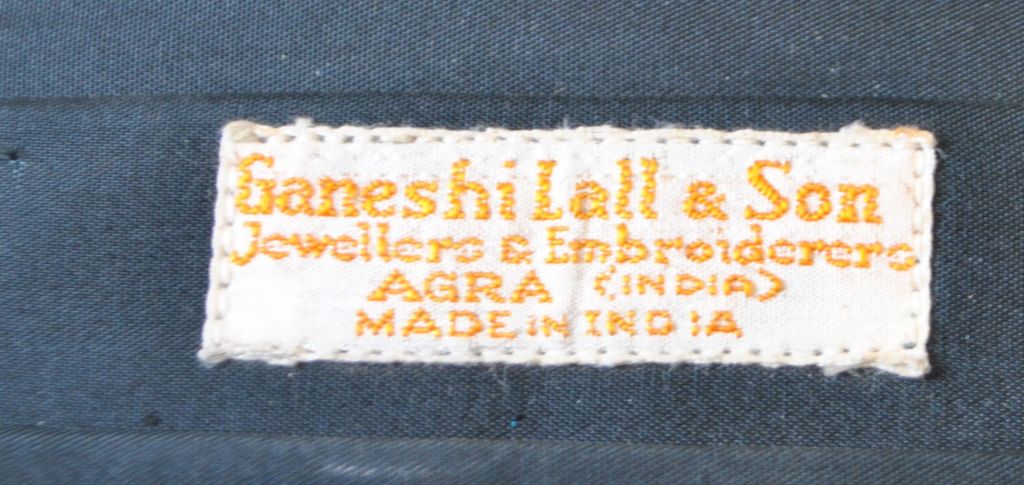 Zardozi Gold bestickte Samt-Firmentasche, Ganeshi Lall & Son, Agra, Indien, 20. Jahrhundert.