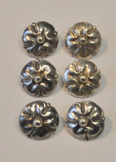 Sammlung von 6 Silberknöpfen, Dänemark des 20. Jahrhunderts.