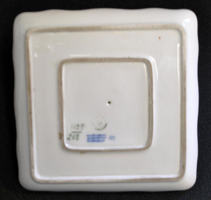 Royal Copenhagen Tintenfass aus Porzellan, 1127/258, 20. Jahrhundert Kopenhagen, Dänemark. Weißes Porzellan mit hellblauen Übermalungen und Rosen. Welliger Rand. H.: 4,6 cm. 15 x 15 cm.