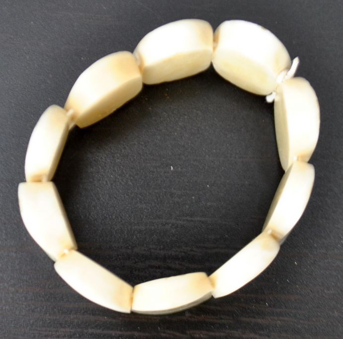 Armband aus grönländischem Knochen, 20. Jahrhundert. Mit Gummiband. H: 2,5 cm. Innendurchmesser: 5 cm.