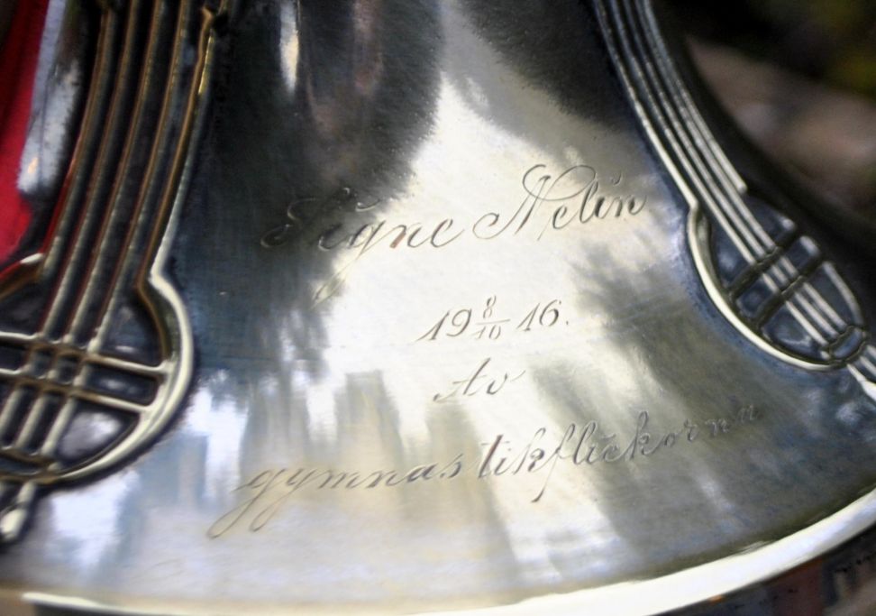Gravur am Fuß: Signe Nelin am 2.10.1916 von Gymnastikmädchen.