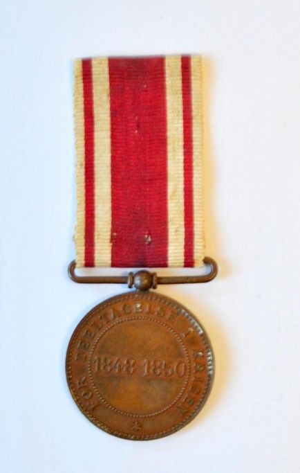 Medaille aus Kupfer für die Teilnahme am Krieg 1848 - 1850. Dänemark. Mit Band. Durchmesser: 3 cm. Guter Zustand.