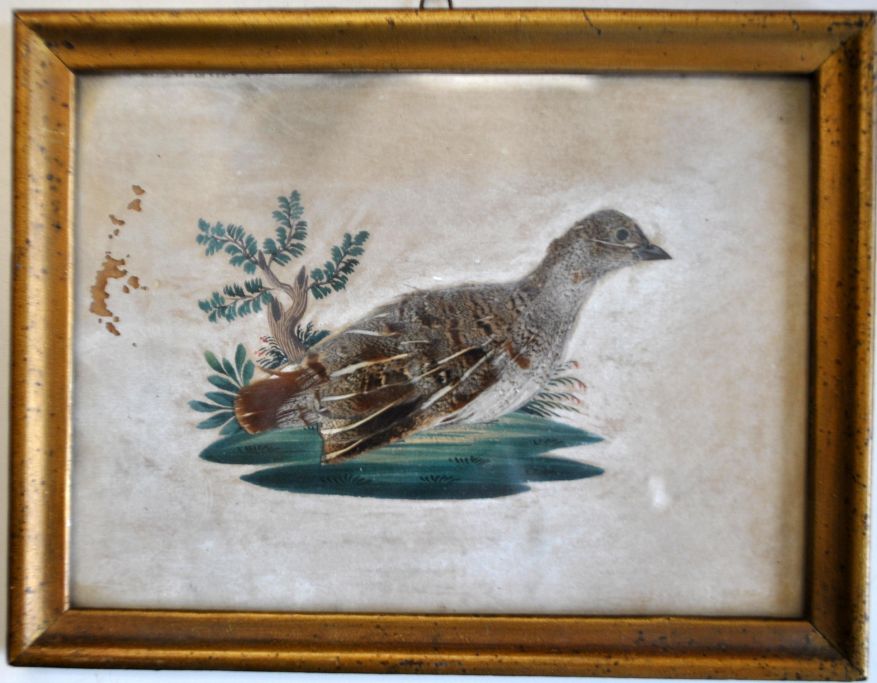Kiebitz, Wilhelm (1847 - 1869) Dänemark: Ein Rebhuhn. Federbild auf Papier. Mit Aquarell. 13,5 x 18,5 cm.
