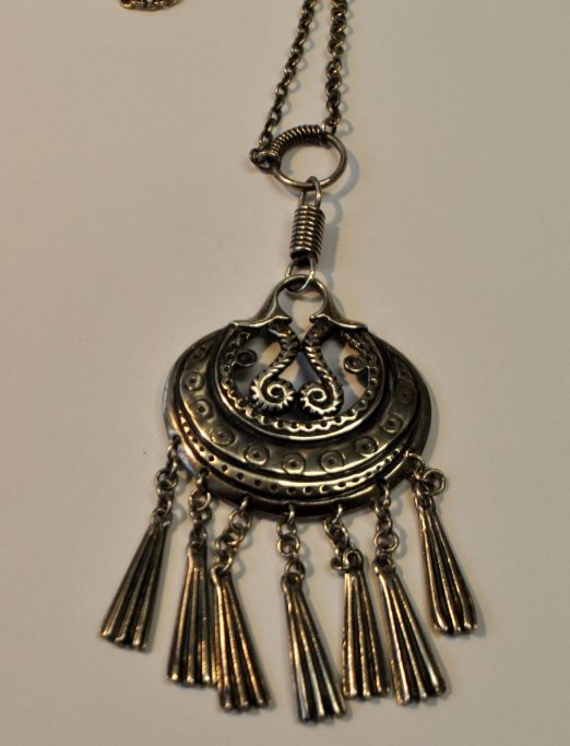 Halskette aus Sterlingsilber. Wikinger-Ornamente. Hergestellt von Jens Johs Aagaard (nach 1974, Svendborg, Dänemark). Gewicht 37,3 Gramm. Kettenlänge: 64 cm.