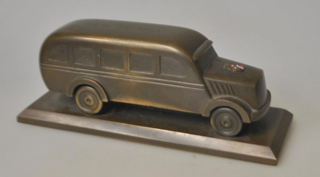 Kutsche aus massiver Bronze, 1946. Mit Emaille-Emblem an der Vorderseite: Danmarks Bilruter (DBR)