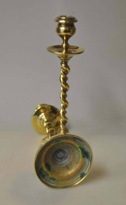 Paar dänische antike Messingleuchter, 19. Jahrhundert. Mit gedrehtem Stiel. Höhe: 19 cm.