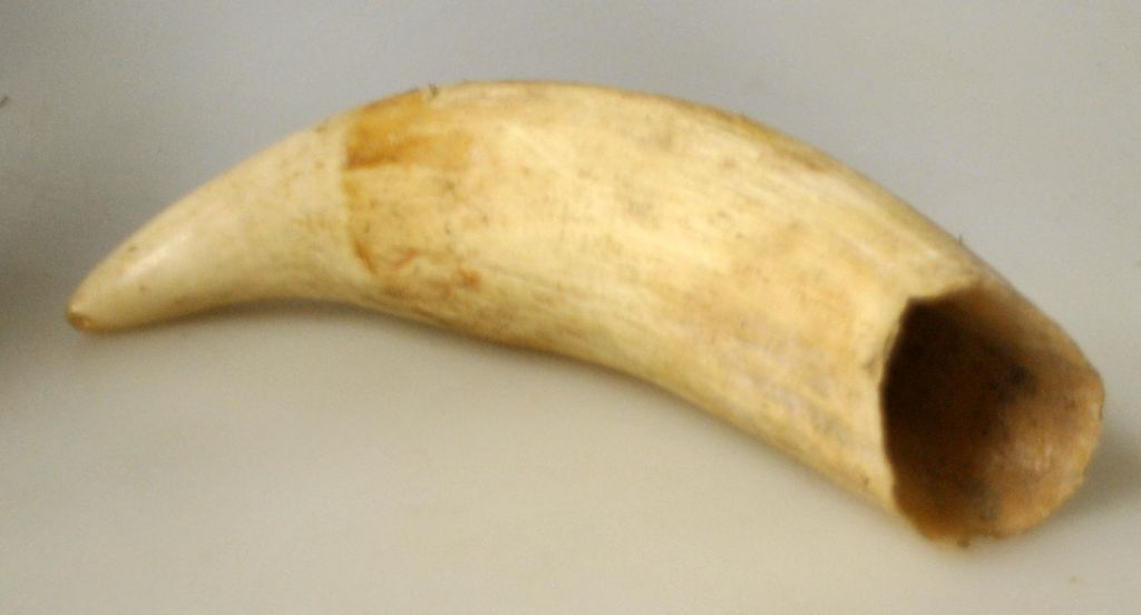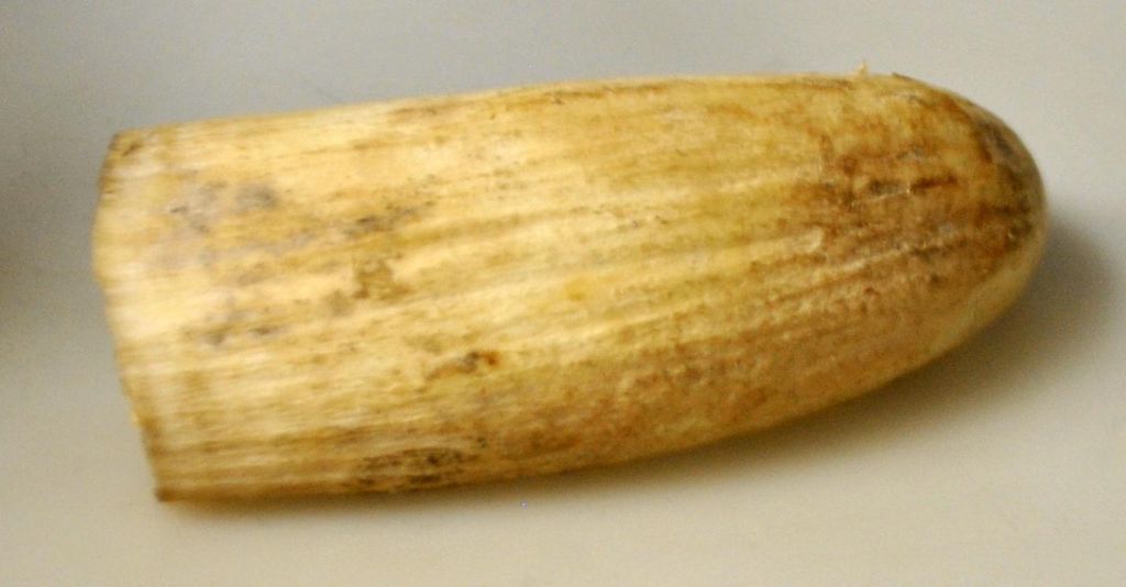 Grönländischer Narwalzahn, 19. Jahrhundert. Länge: 12 cm.