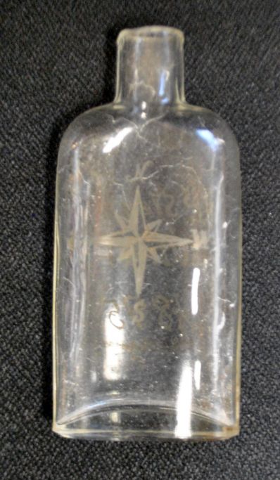 Glas-Taschenlaterne, 1895. Mit Namen und Kompass graviert. L: 13 cm.