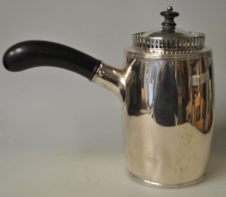 Martin Hinrich Petersen (1756–1824), Haderslev, Dänemark: Stjert Empire Kaffeekanne aus Silber. Glatter Korpus. Henkel und Knauf aus Ebenholz. Meister- und Ortsmarke. Seitliche Kartusche: AWH: 21 cm. Gewicht: 579 Gramm.