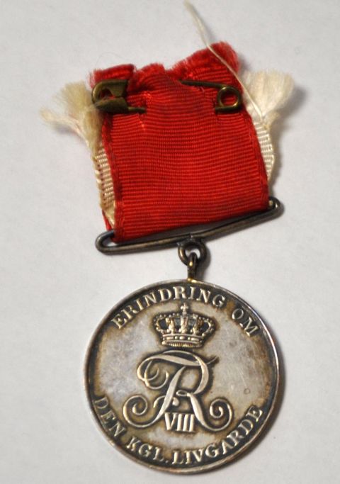 Gedenkmedaille aus Silber, 1908, Dänemark. 200-jähriges Jubiläum der Königlichen Leibgarde. Durchmesser: 3 cm.