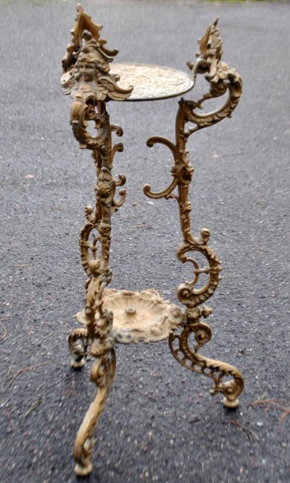 Eiserner Sockel, um 1870, Dänemark. Auf drei Beinen, verziert mit Engeln und Delfinen. Höhe: 75 cm.