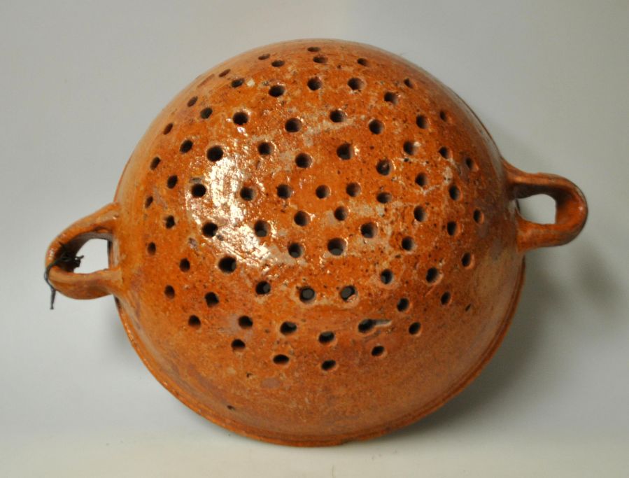 Sieb aus glasierter Keramik, 19. Jahrhundert. Dänemark.