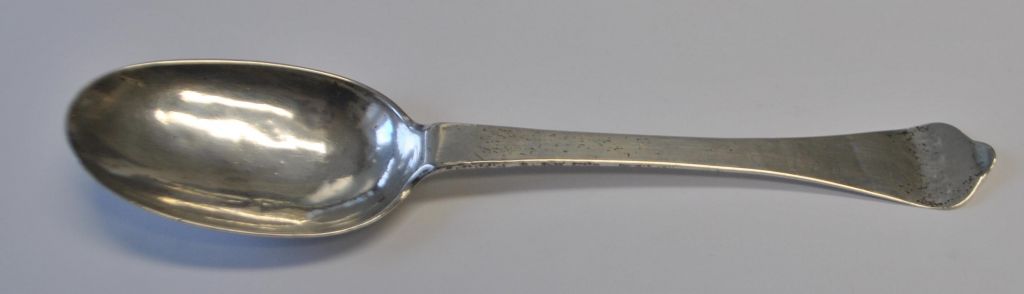 Dänischer Silberschmied (18. Jahrhundert): Silberlöffel mit Rattenschwanzmuster.