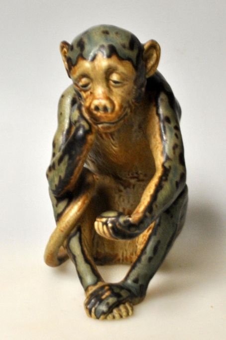 Figur von Bing & Grondahl, 20. Jahrhundert. Kopenhagen, Dänemark: Ein Affe mit einer Schildkröte. Nr. 1510.