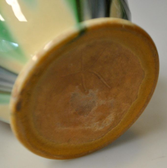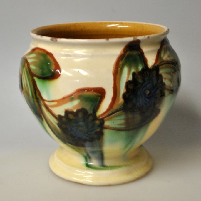 Blumentopf von H. A. Kähler, 20. Jahrhundert. Næstved, Dänemark. Glasur. Mit grüner, brauner, blauer und schwarzer Glasur. Gestempelt. 13 cm.
