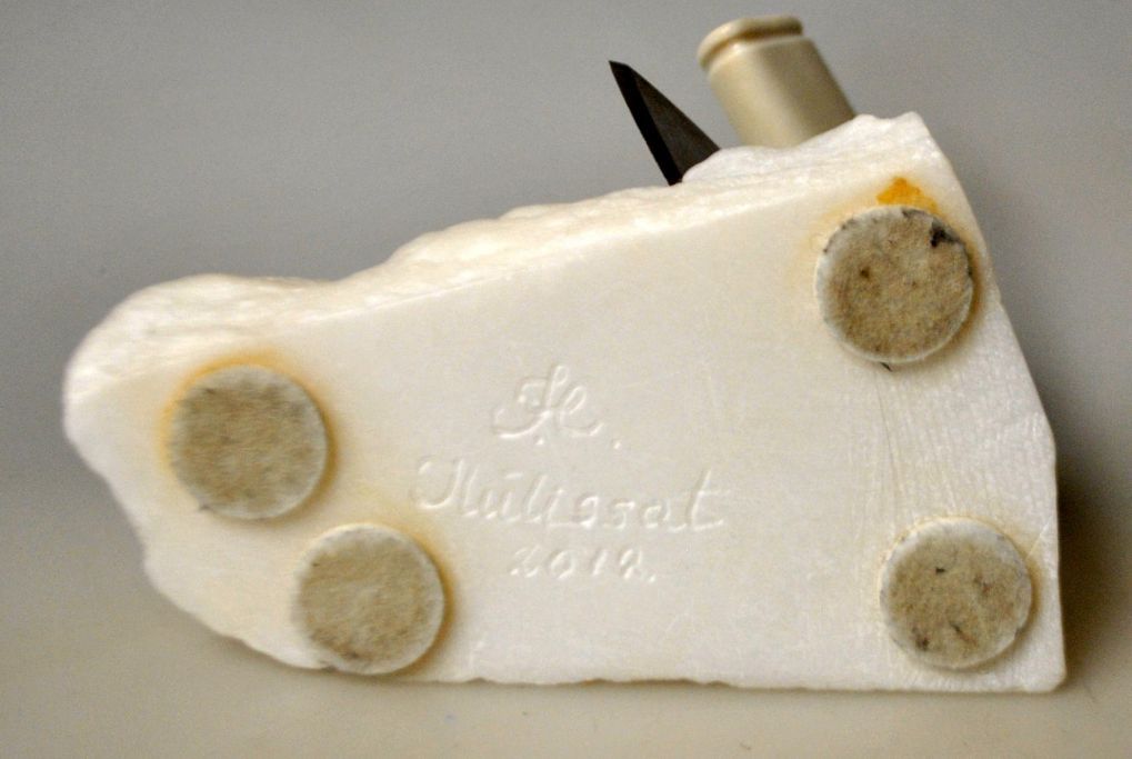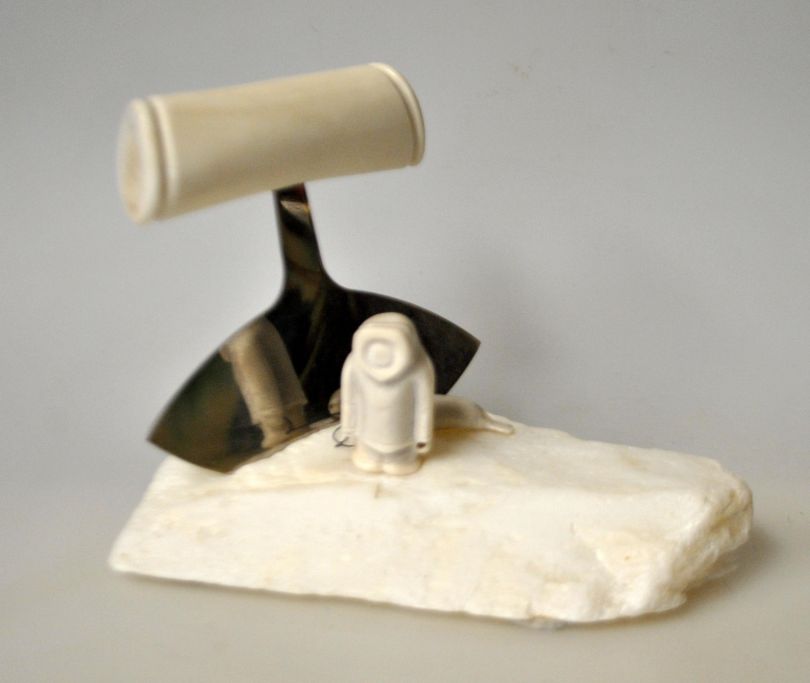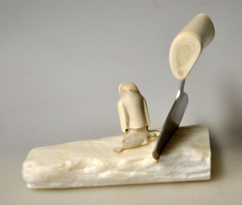 Grönländische Figur, 2012. Figur und Ulu aus Rentierknochen.