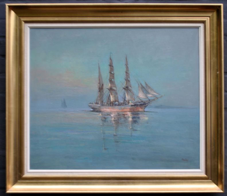 Ploug, Ejnar Andreas (1914–1983) Dänemark: Altes Boot im Windstille. Öl auf Leinwand. Signiert: Ploug. H: 51 cm. B: 61 cm.