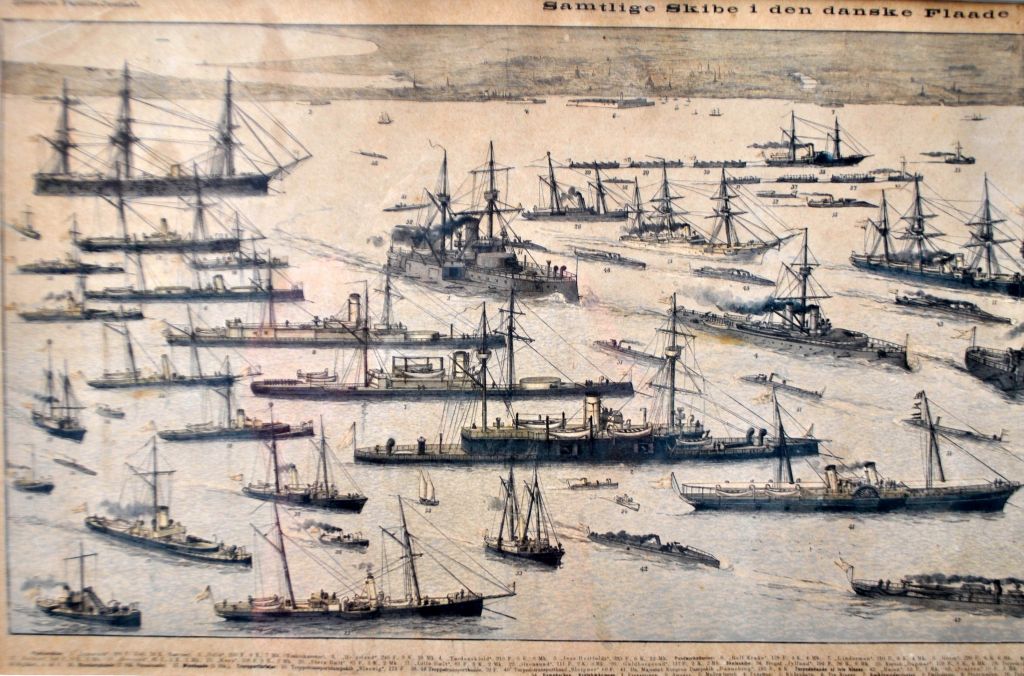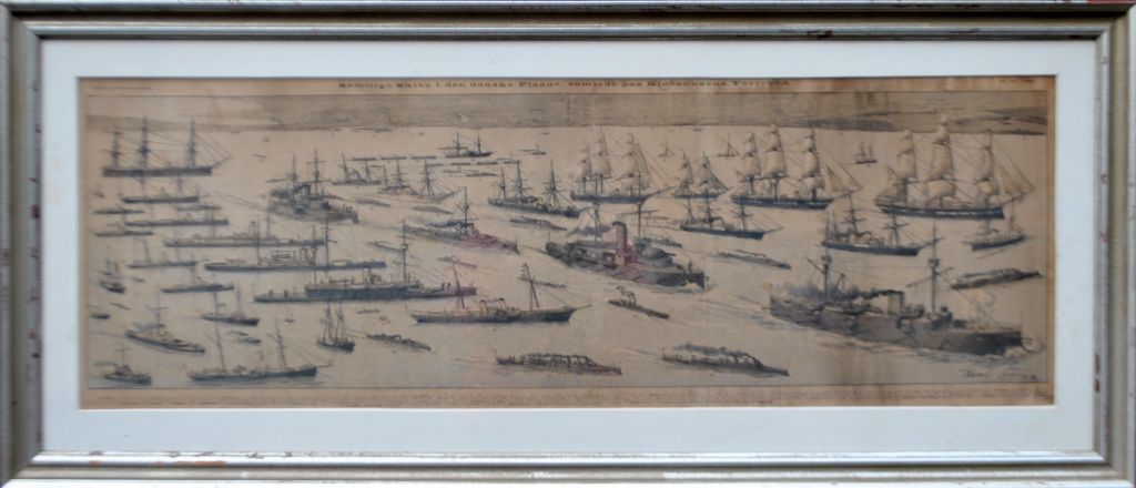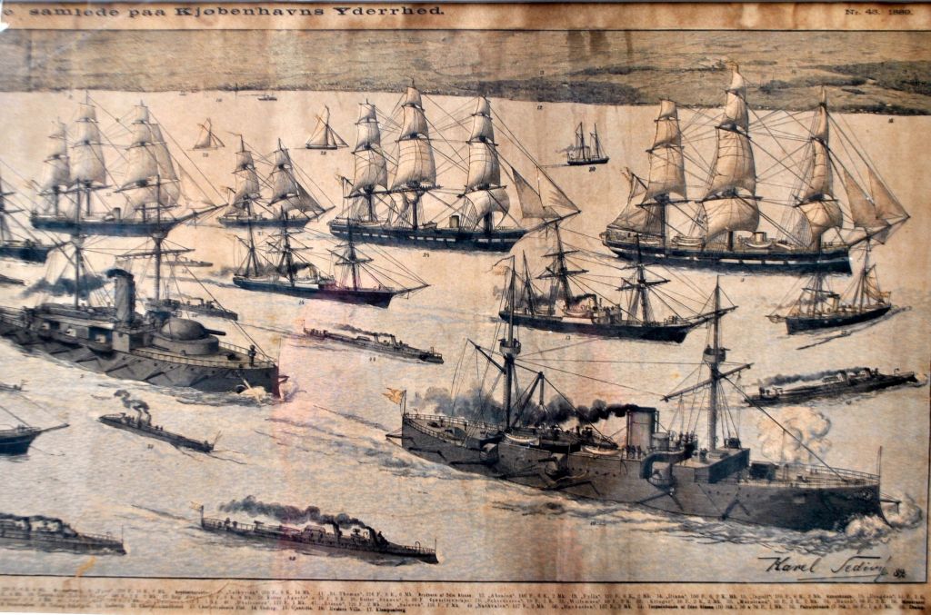 Sedivy, Karel (1860–1906), Tschechische Republik/Dänemark: Alle Schiffe der dänischen Flotte versammelten sich 1889 vor den Toren Kopenhagens. Aus dem illustrierten Familientagebuch Nr. 43. Lithografie. Signiert. Höhe: 35 cm. Breite: 105 cm.