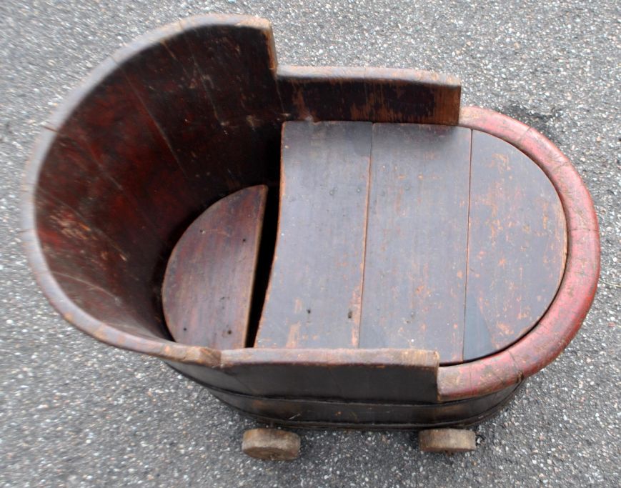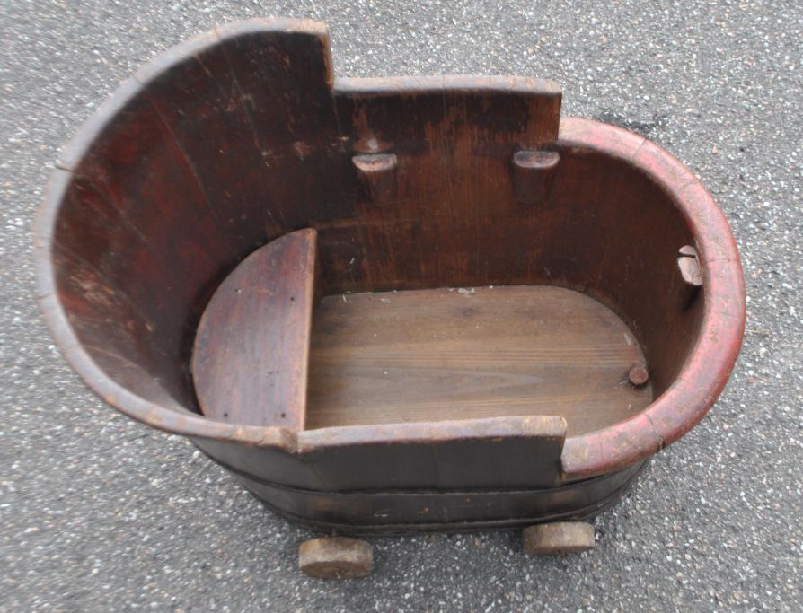 Holzbadewanne für Kinder, 19. Jahrhundert.