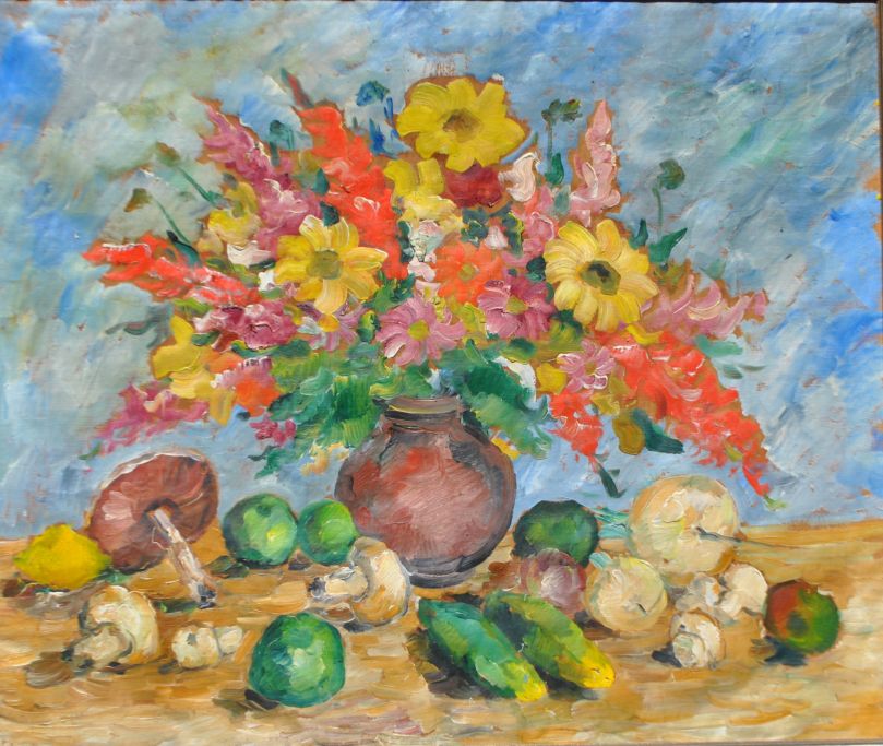 Nicolaisen, Peter (1894–1989) Dänemark: Stillleben. Öl auf Leinwand. Unsigniert. 106 x 126 cm.