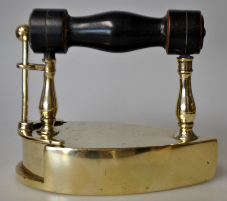Messing Eisen, 19. Jahrhundert. Dänemark. Mit Holzgriff. Gestempelt BL. Schwaches Blumenranken-Dekor. Höhe: 12 cm. Länge: 14,5 cm.