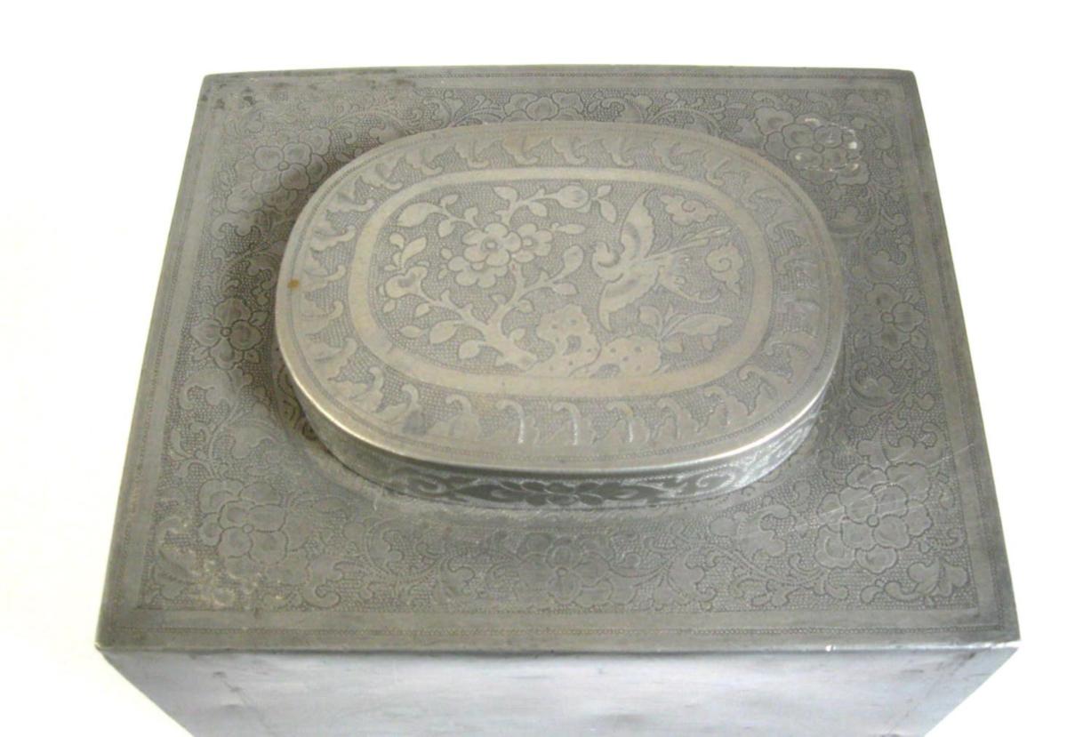Chinese Teedose aus Zinn, 19. Jahrhundert.