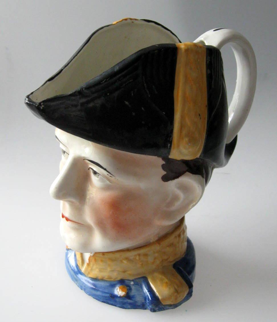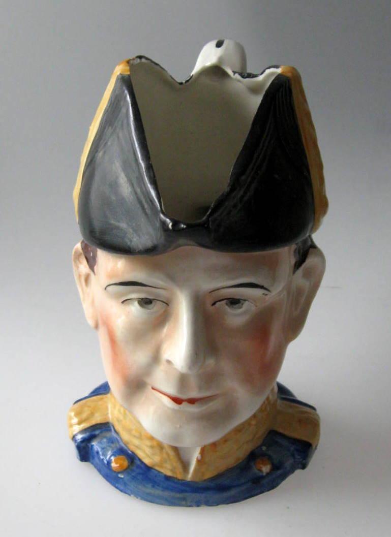 Englischer Lehmkrug, 19. Jahrhundert. Konzipiert als Admiral. Handbemalt. H:. 18 cm. Ohne Stempel.